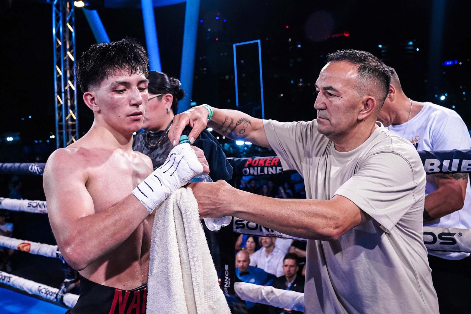 Claramente, Narvaes se mostró contrariado con el fallo y lo asumió como “parte de la experiencia” valorando las dificultades que le planteó su rival. «Yo me sentí ganador y en algún momento, hasta lo tuve sentido. Igual es jóven y tiene un gran futuro”, declaró en el ring. Fotos Boxeo de Primera.