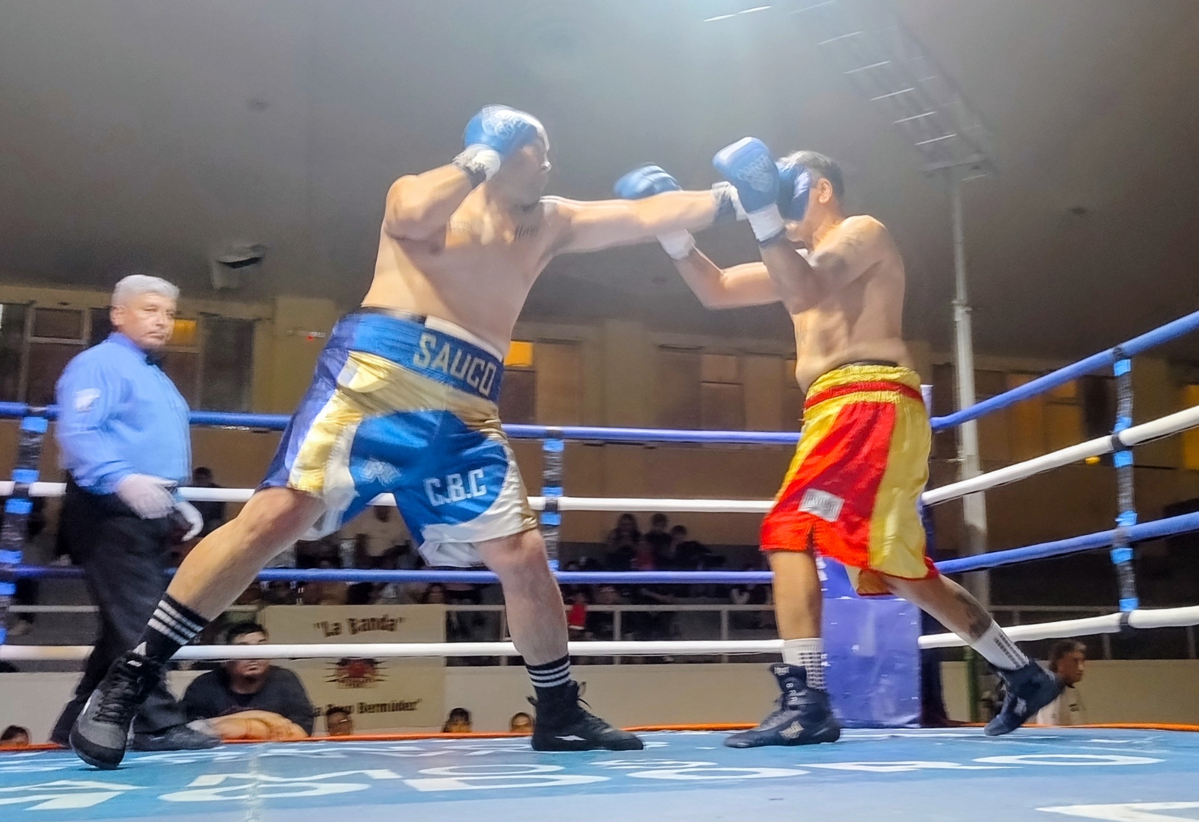 Jonathan Sauco (105 kgs.) se hizo dueño de la pelea de fondo profesional en el gimnasio Municipal Nro. Uno. Después de seis rounds, el fueguino radicado en Comodoro Rivadavia superó por puntos en fallo unánime al experimentado santafecino Ramón Guidetti (95). De éste modo, el ganador mejoró sus números (3-2) y volvió a la senda positiva en su regreso a la actividad asumiendo localía. Sauco justificó su diferencia en las tarjetas por lo expuesto en los momentos claves.