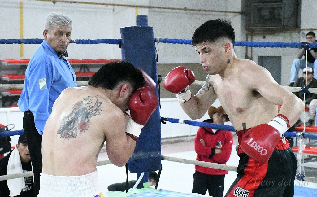 El comodorense Ciro García (Team Montiel) superó en fallo unánime al chileno Eduardo Millahueque (Delta Box de Puerto Chacabuco) en la categoría hasta 64 kilos y hubo otro comodorense en acción: Agustín “Metralleta” Pérez (Team Rodríguez) venció en fallo unánime al local Brian Silvera (Team Ares) en 69 kgs.